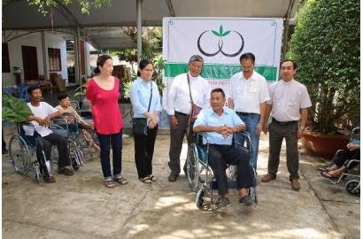 Hình ảnh trao xe lăn Tình thương