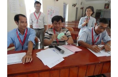 Chương trình tập huấn khóa ToT ngày IV đi sâu hơn vào các hoạt động thực hành. Các nhóm thực tập và trình bày Giáo án chi tiết trong vai trò là những Tập huấn viên. Nhóm Caritas Mỹ Tho thực tập với đề tài “Thùng rác gia đình”, còn nhóm Caritas Long Xuyên chọn đề tài “Tập huấn về phòng chống sâu rầy”.