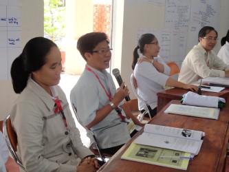 Ngày học hôm nay bắt đầu sớm hơn thường lệ. Lúc 7g15, Sơ Têrêsa Thùy Dương – Phụ trách Đào tạo của Caritas Việt Nam, trình bày ngắn gọn cho Tham dự viên (TDV) về Sơ đồ tổ chức khoá đào tạo, cùng với một số mẫu văn bản, nhằm giúp TDV làm quen với tiến trình tổ chức này.