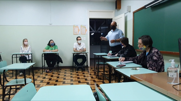 Sérgio Velasques Garcia, đứng, phát biểu tại cuộc họp thành lập nhóm CES Mãos em Ação