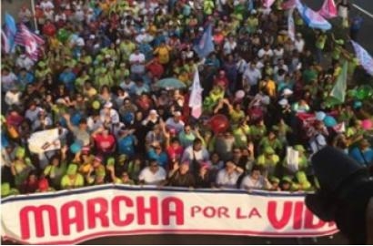 Cuộc tuần hành được tổ chức bởi "Marcha Por La Vida" (Tuần hành vì sự sống), có 117 thành phố tham gia, tập trung hàng ngàn người với khẩu hiệu "hãy cứu cả hai". Tại Buenos Aires, các nhà tổ chức sự kiện đã yêu cầu các nhà lập pháp, cả từ phía chính phủ và phe đối lập bác bỏ dự luật một cách dứt khoát. Họ đọc văn bản: "Chúng tôi muốn bảo vệ cả hai sự sống. Cho dù nó được thực hiện theo yêu cầu của người mẹ hay không, phá thai gây ra cho người phụ nữ và cho những người thân cận những thiệt hại, để lại những hậu quả không thể cứu vãn, nó trở thành một cuộc tấn công chống lại lợi ích chung của xã hội".