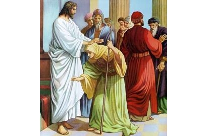 Câu chuyện được khởi đi từ việc Đức Giê-su chữa người đàn bà bị quỷ ám làm cho khòm lưng đã 18 năm vào đúng ngày Sa-bát. Thấy vậy, ông trưởng hội đường xem ra có vẻ khó chịu vì Đức Giê-su đã vi phạm luật ngày Sa-bát. Thấy vậy, Đức Giê-su đã lên tiếng nói: "Hỡi những kẻ giả hình, chớ thì trong ngày Sa-bát, mỗi người trong các ông không thả bò hay lừa của mình ra khỏi chuồng mà dẫn nó đi uống nước sao? Phương chi người con gái của Abraham này, Satan cột trói nó đã 18 năm nay, chớ thì không nên tháo xiềng xích buộc nó trong ngày Sa-bát sao?". Qua câu hỏi đó, Đức Giê-su mặc cho luật một tinh thần mới, đó là: yêu thương, liên đới và tha thứ. Đây chính là cốt lõi của luật. Luật mà không có tình yêu lồng vào thì đó là luật chết, vì nó giết chết con người cách khủng khiếp nhất.