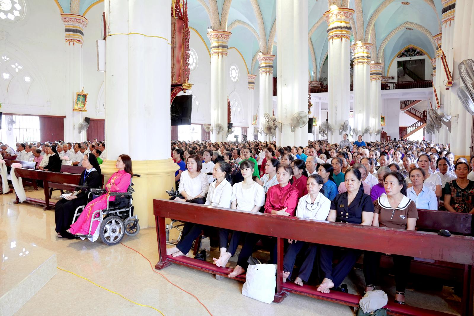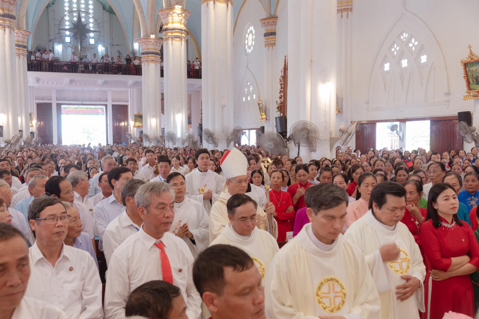 Thánh lễ tạ ơn mừng bổn mạng, do Đức Cha giáo phận chủ tế, là đỉnh cao của ngày hành hương Năm Thánh của Caritas Bùi Chu. Giữa biển người gần năm nghìn tham dự viên, những lời ca, tiếng hát, và phụng vụ trang nghiêm đã dâng lên Thiên Chúa tâm tình tạ ơn sâu lắng. Đức Cha khích lệ mọi thành viên Caritas hãy tiếp tục mang tinh thần của Thánh Giáo hoàng Gioan Phaolô II ra giữa đời: yêu thương phục vụ bằng con tim, gieo hy vọng bằng hành động.