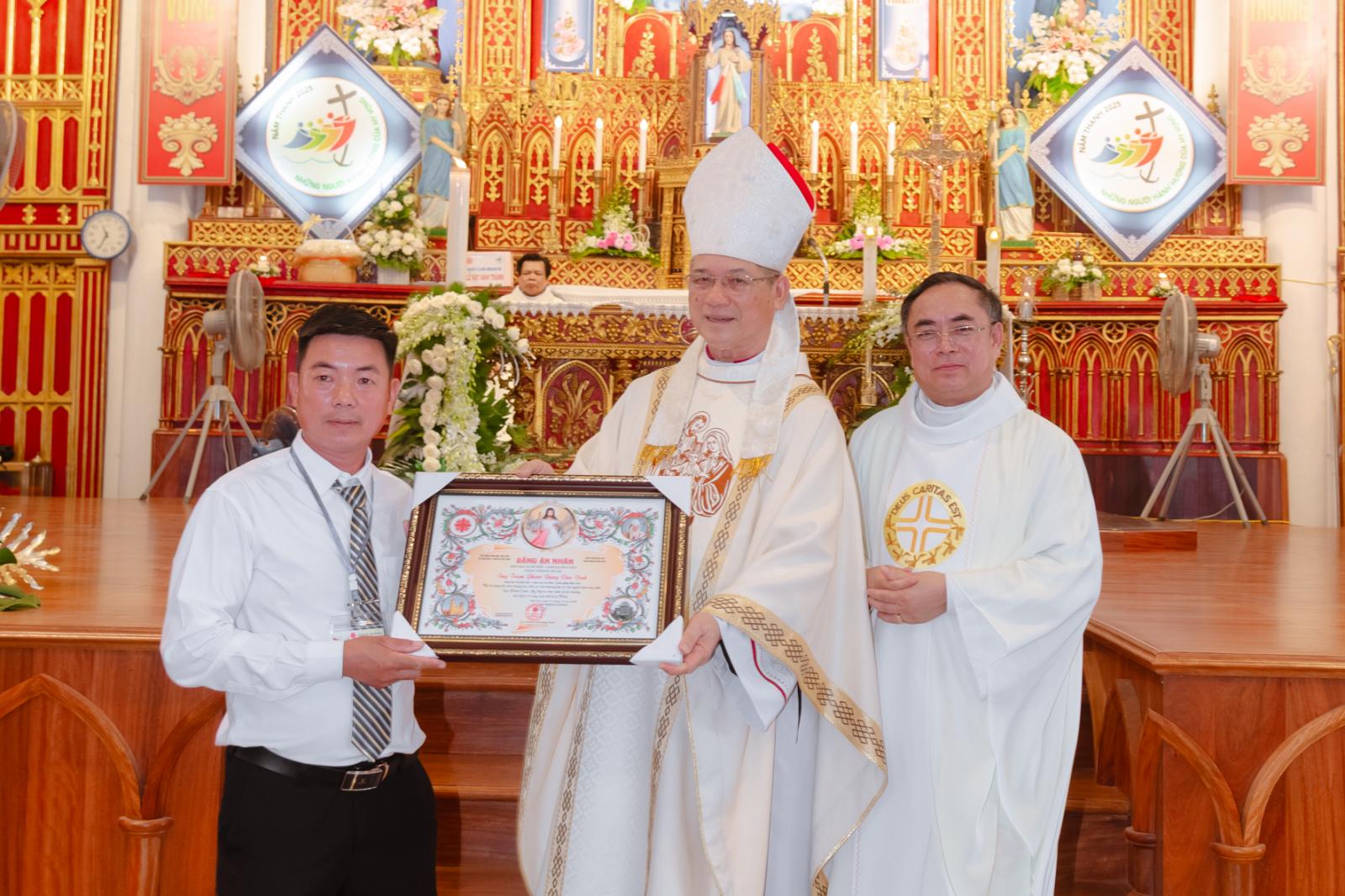 Cuối Thánh lễ, Đức Cha và Cha Gioan Giám đốc Caritas đã trao bằng ân nhân cho những tấm lòng quảng đại đã âm thầm cộng tác và nâng đỡ các hoạt động bác ái của Caritas Bùi Chu. Cử chỉ tri ân ấy không chỉ thể hiện lòng biết ơn, mà còn là lời mời gọi mỗi người tiếp tục chung tay gieo những hạt giống yêu thương trong cuộc sống.
