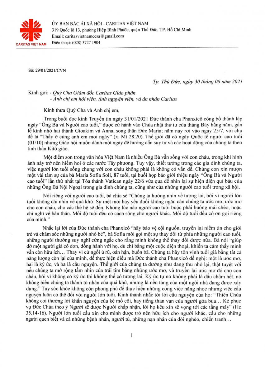 Thư Caritas - Tháng 7/2021: Chăm Sóc Ông Bà và Người Cao Tuổi