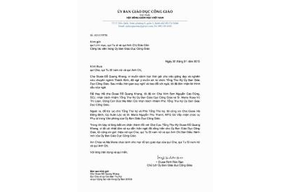 Thư giới thiệu nhân sự mới của Ủy ban Giáo dục Công giáo