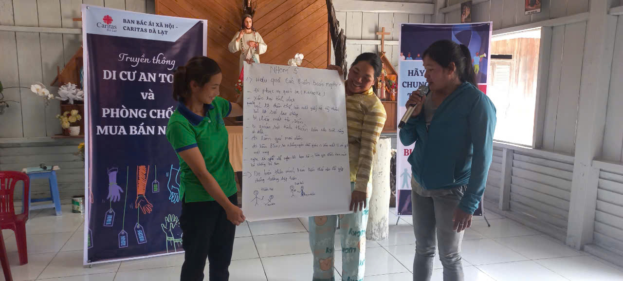 Trước thực trạng đó, Caritas Đà Lạt đã tổ chức buổi truyền thông nhằm trang bị cho các chị em phụ nữ và các em học sinh những kiến thức cơ bản về nguyên nhân, mục đích, và các thủ đoạn của kẻ buôn người. Đây là cơ hội quý giá để cộng đồng có thêm hiểu biết và ý thức bảo vệ bản thân, gia đình khỏi các mối đe dọa từ nạn buôn người.