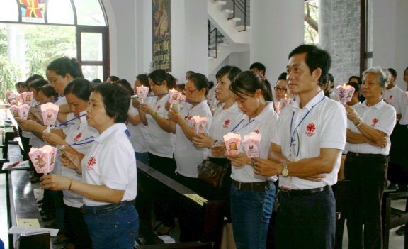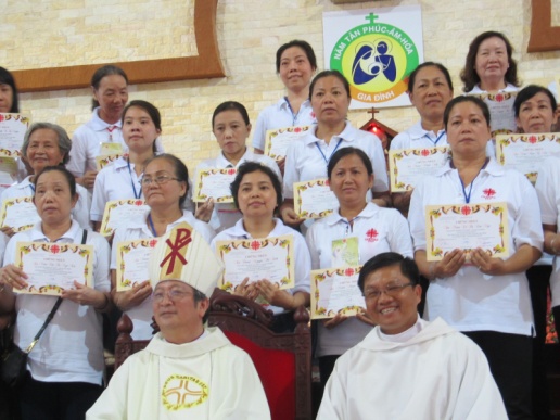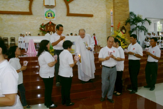 Trước khi trao Giấy chứng nhận cho các thành viên, trong nghi thức sai đi Đức TGM đã trao lửa phục sinh cho anh chị em, đây là dấu chỉ để mọi người luôn yêu thương nhau và đồng hành trong phục vụ bác ái. Cảm động nhất là khi chúc bình an, rất nhiều người đã đến chúc mừng và bắt tay thân mật với chúng tôi, tôi đọc được trong đó sự gởi gấm yêu thương và chúng ta cùng đồng hành trên chặng đường phục vụ kế tiếp.