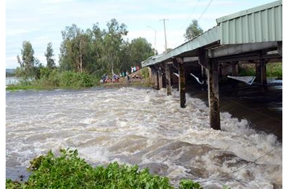 Hiện mực nước lũ sông Cửu Long gần mức báo động một. Cụ thể, thời điểm xả lũ, nước ngoài đập Tha La là 2,99 m, trong đập 1,98 m (cao hơn cùng kỳ năm ngoái 1,07 m và 0,49 m). Còn mực nước ngoài đập Trà Sư đạt 2,97 m, bên trong 2,05 m (cao hơn cùng kỳ năm ngoái 1,12 m và 0,36 m).